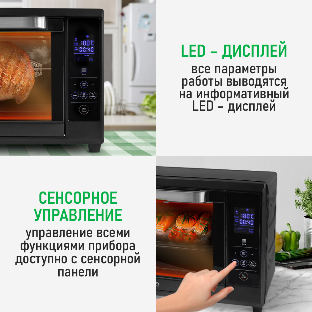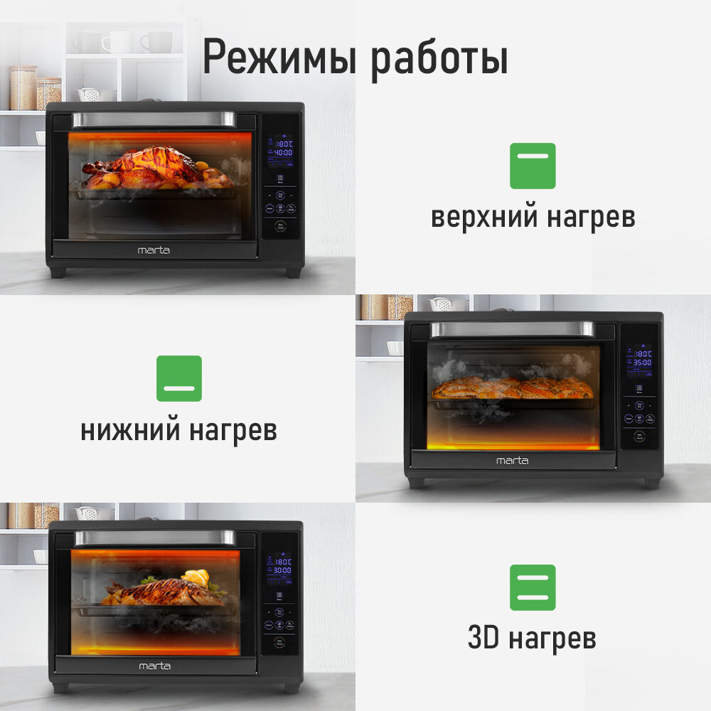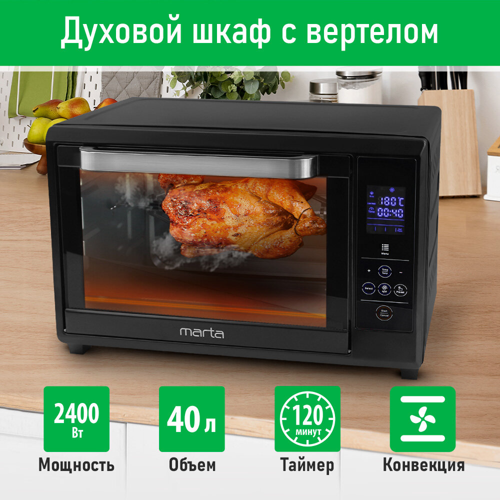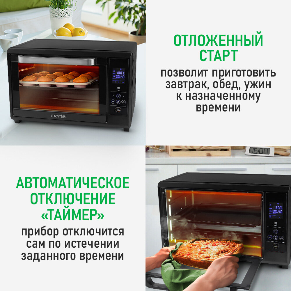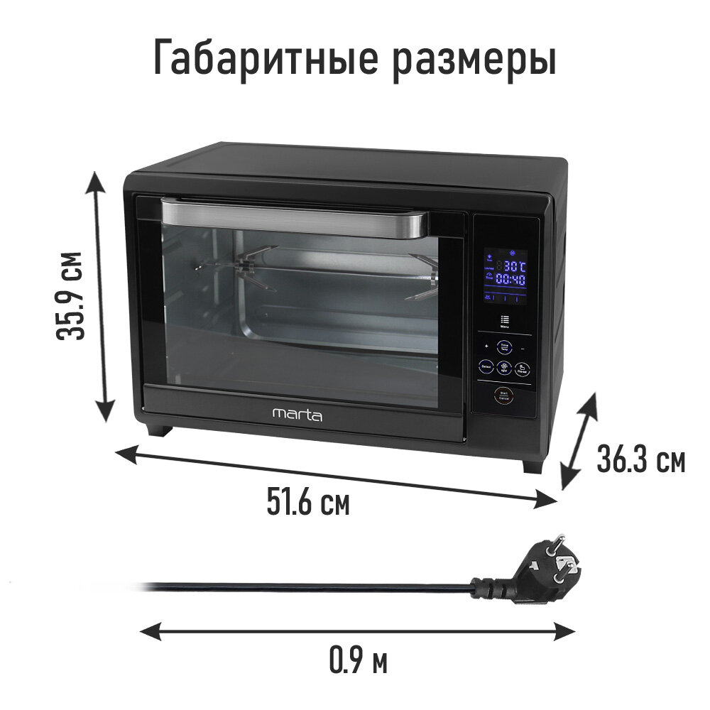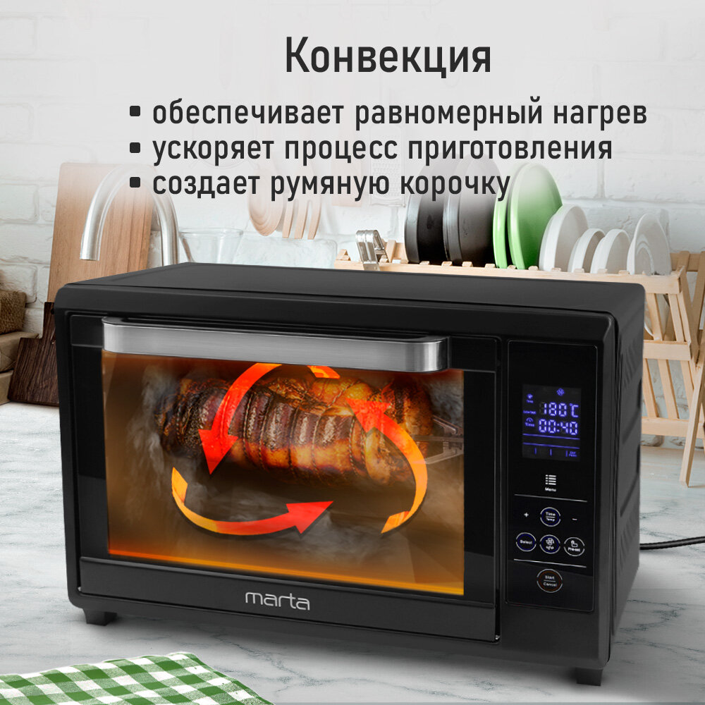 Мини-печь MARTA MT-EO4285A (40 литров, сенсор+конвекция+вертел+эмаль) черный жемчуг интересное: