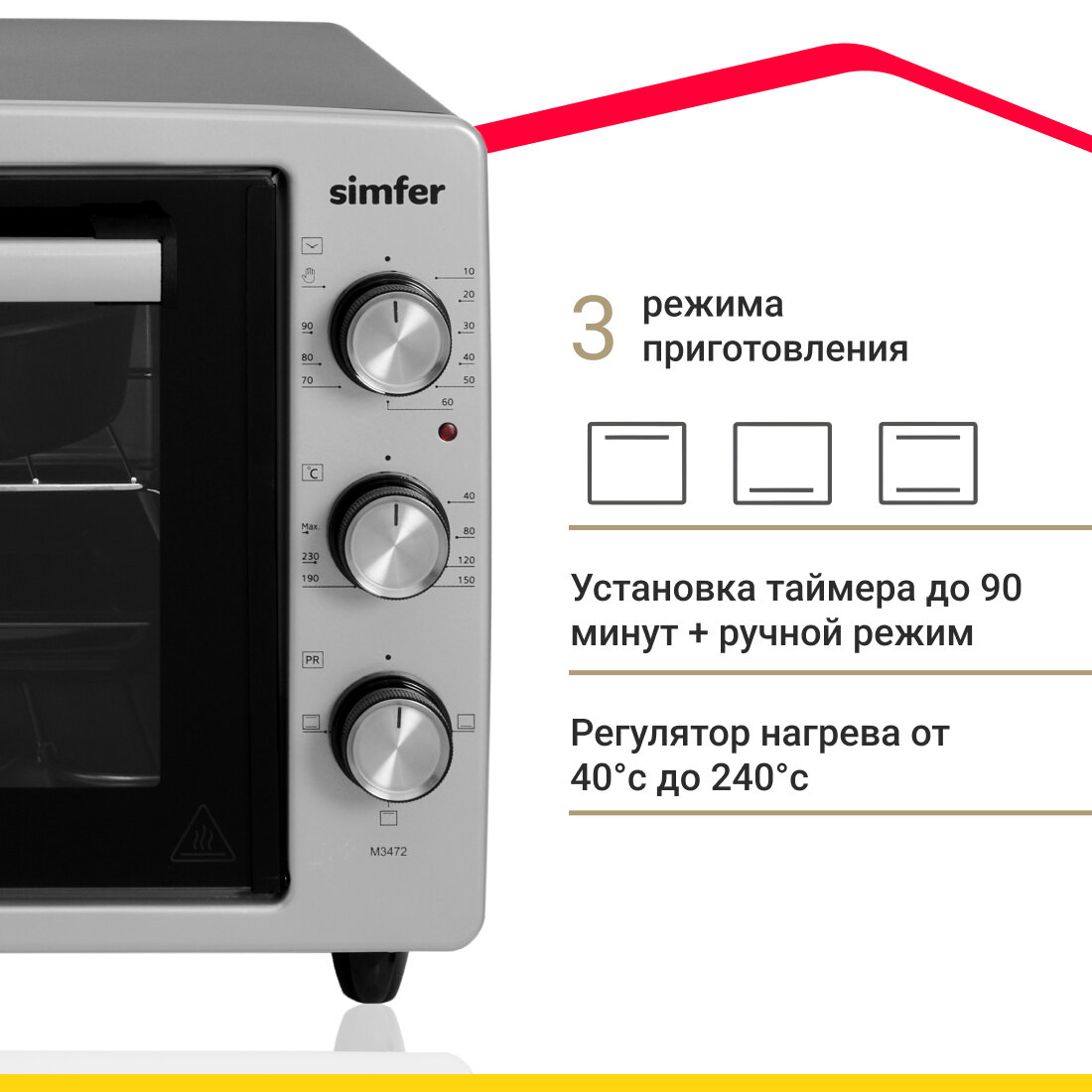 Мини-печь Simfer M3472 (3 режима, цвет серый) интересное: