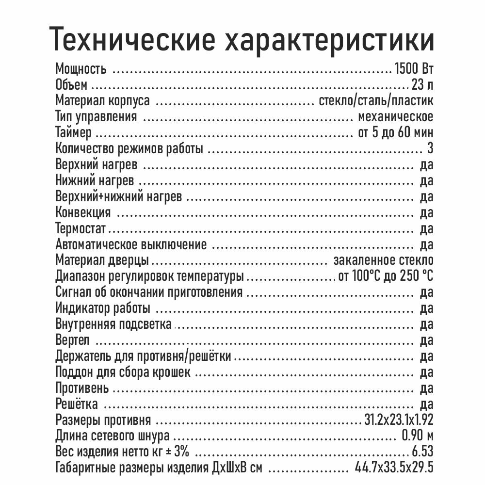 Мини-печь GURMAN GR-HL630, 63л, 2200Вт.