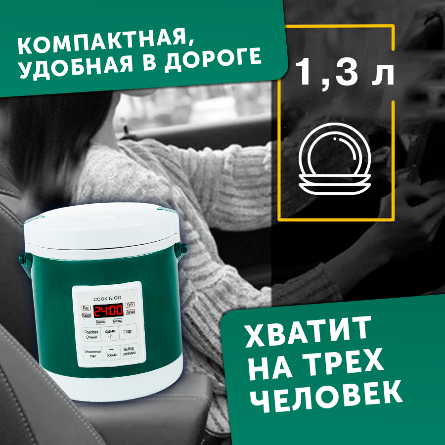 Мультиварка автомобильная 1,3л 12/24 V, панель на русском языке, зеленая интересное: