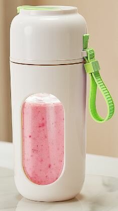 Соковыжималка центробежная портативная аккумуляторная со стаканом (спортивная бутылка), бежевая с зеленым ремешком интересное: