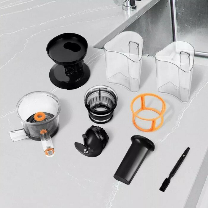 Kitfort Соковыжималка Kitfort КТ-1160, шнековая, 150 Вт, 1/1 л, 50 об/мин, оранжево-чёрная интересное: