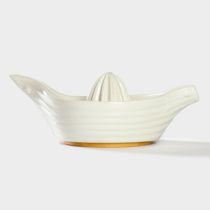 Купить Соковыжималка фарфоровая на подставке из бамбука BellaTenero, 19×12×7,5 см, цвет белый