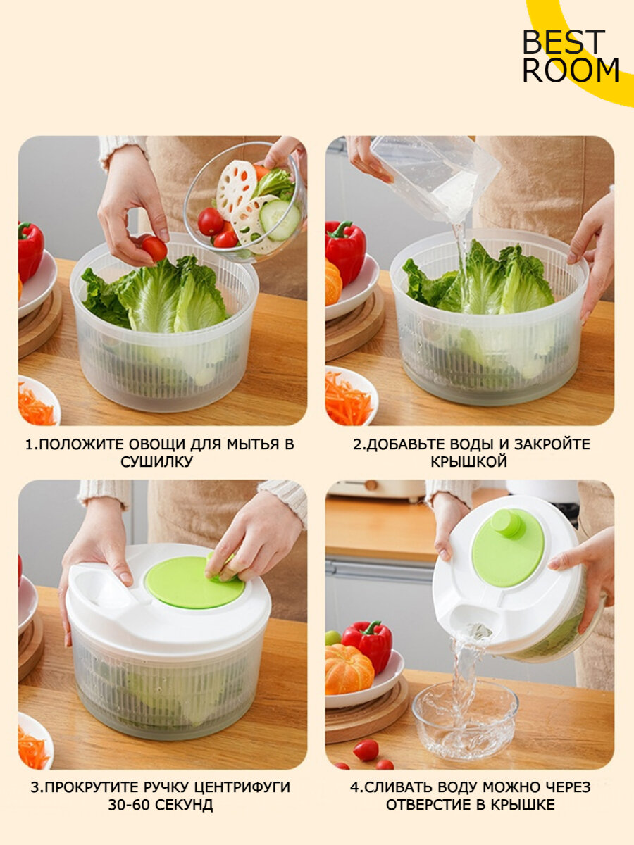 Сушилка для салата и зелени 3л / Центрифуга для салата и зелени, овощей и фруктов интересное:
