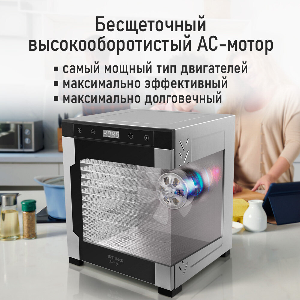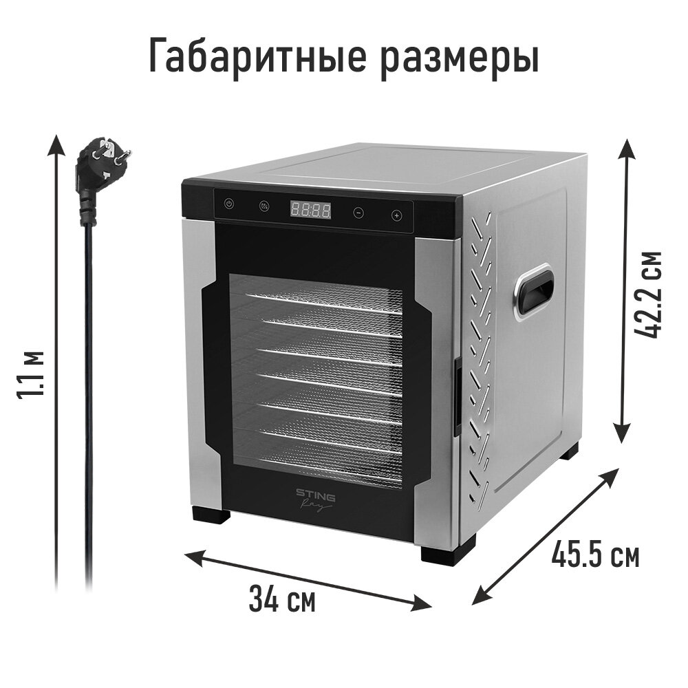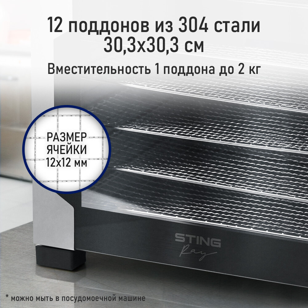 Купить STINGRAY ST-FD705A 12 поддонов: 10 + 1 для ягод + 1 для пастилы черный сушилка д/фруктов,овощей