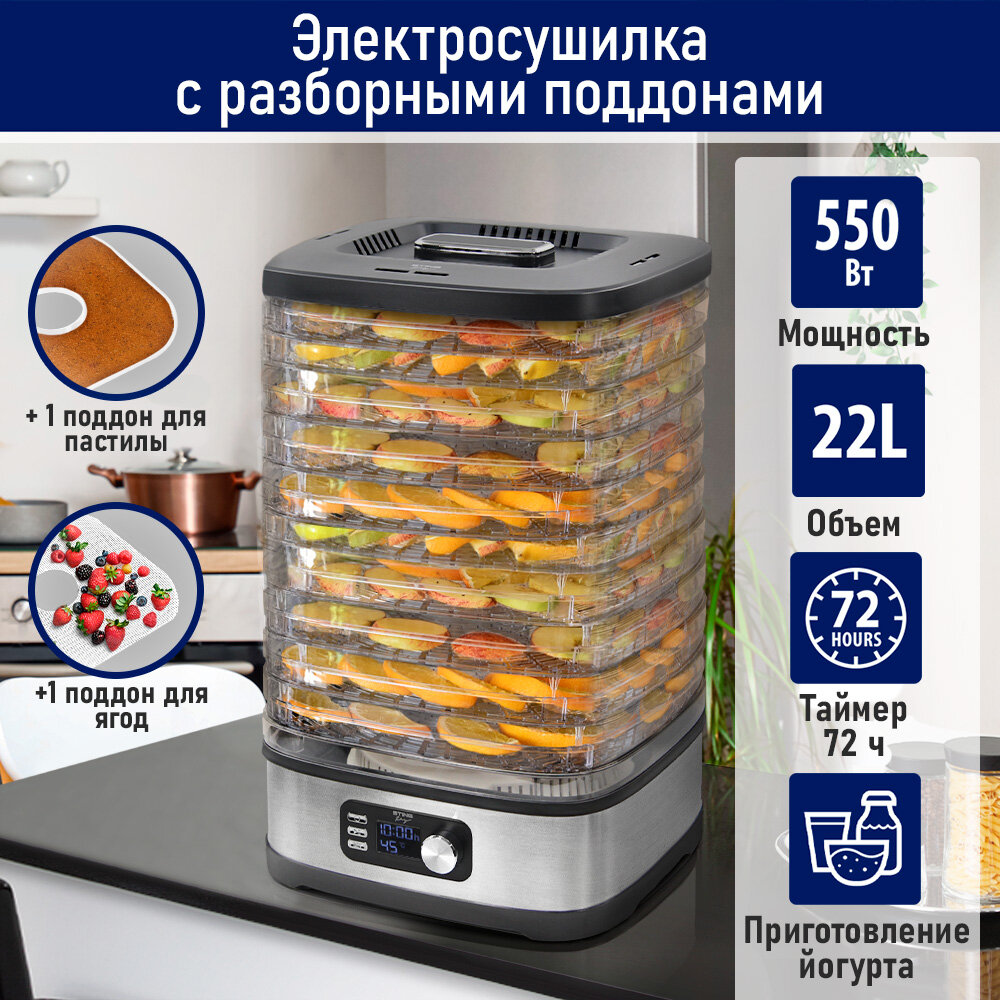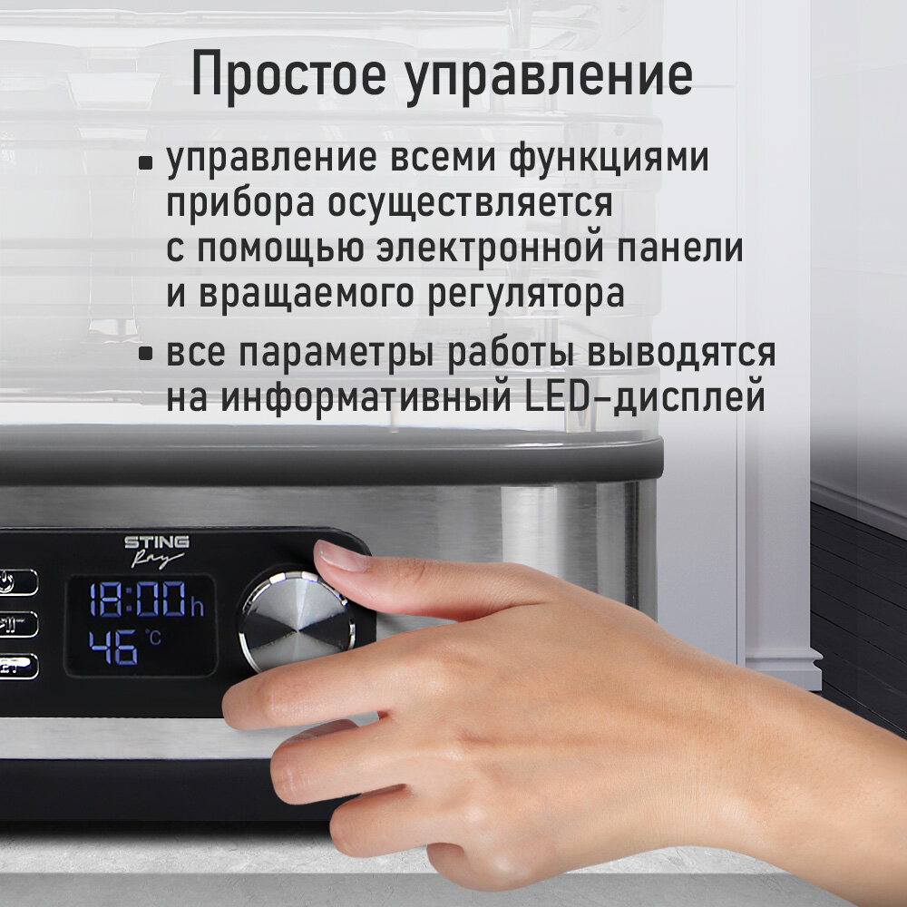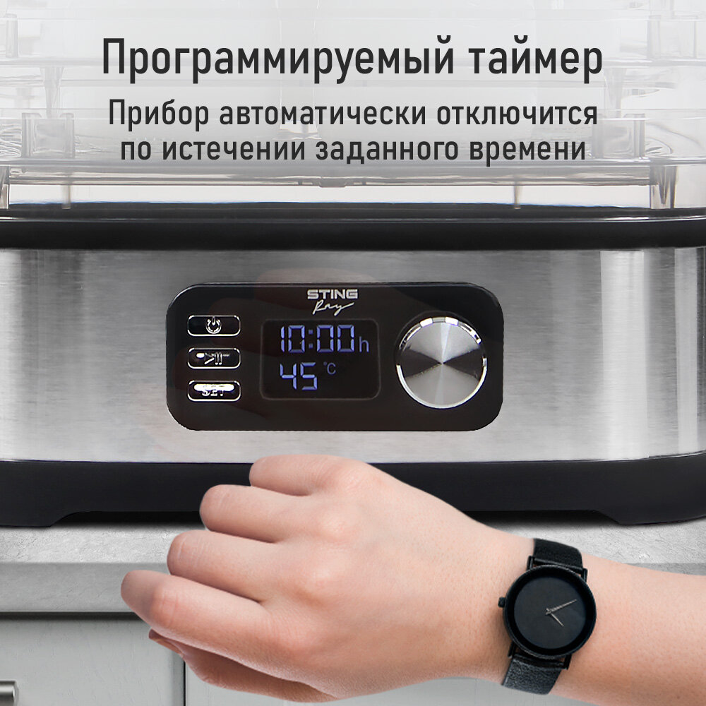 STINGRAY ST-FD728F 12 поддонов:10+1 для ягод+1 для пастилы черный/черный сушилка д/фруктов,овощей интересное: