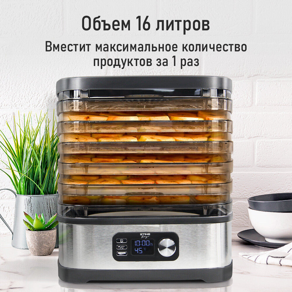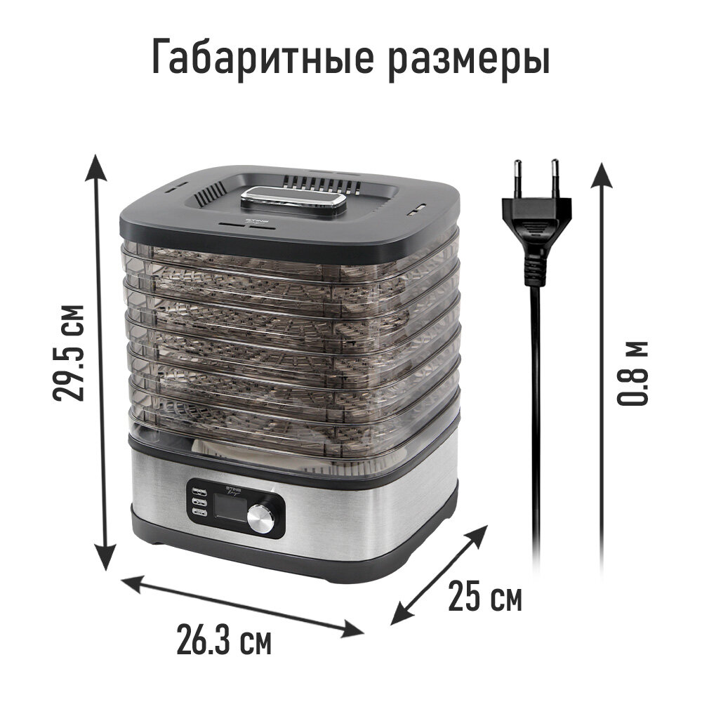 STINGRAY ST-FD728C 8 поддонов:6+1 для ягод+1 для пастилы черный/темно-серый сушилка д/фруктов,овощей интересное: