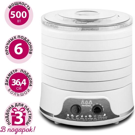 Сушилка для овощей и фруктов "Мастерица" Efd-5000, 500 Вт, 6 ярусов, белая Мастерица 10624394 . интересное: