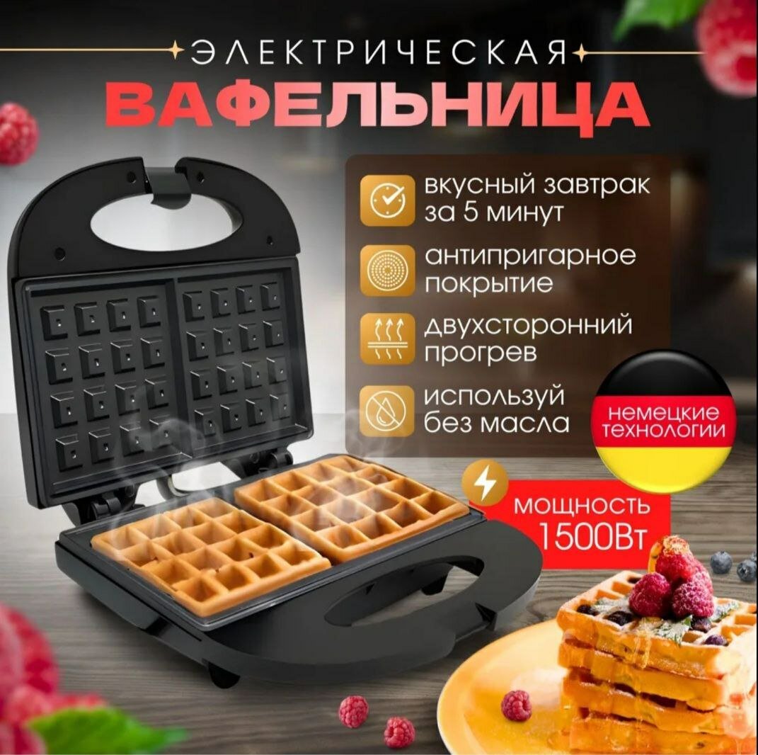 Вафельница электрическая 1500Вт, электровафельница для венских и бельгийских вафель