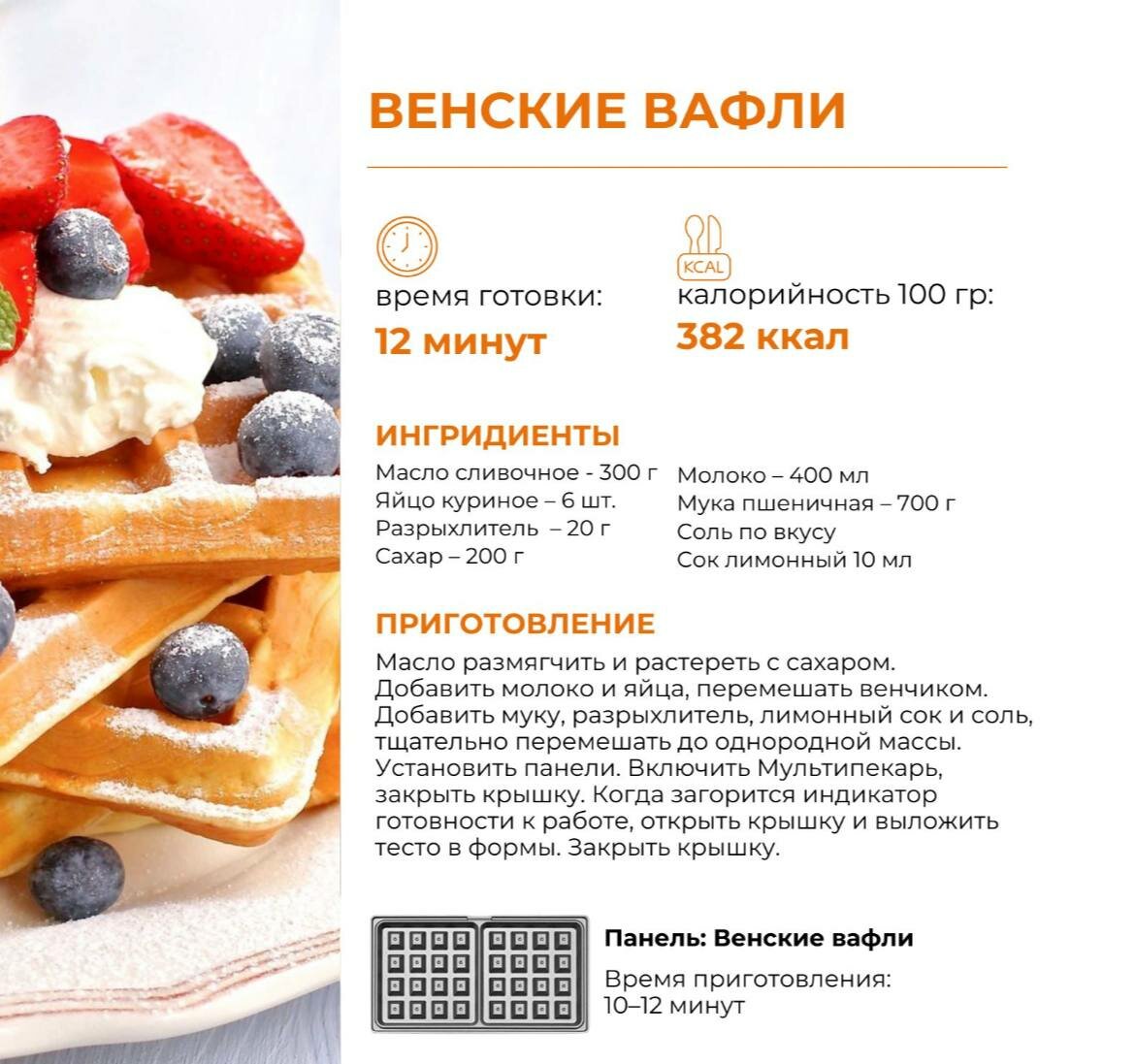 | Вид панели для вафель | бельгийские / венские / мини-вафли / шведские |