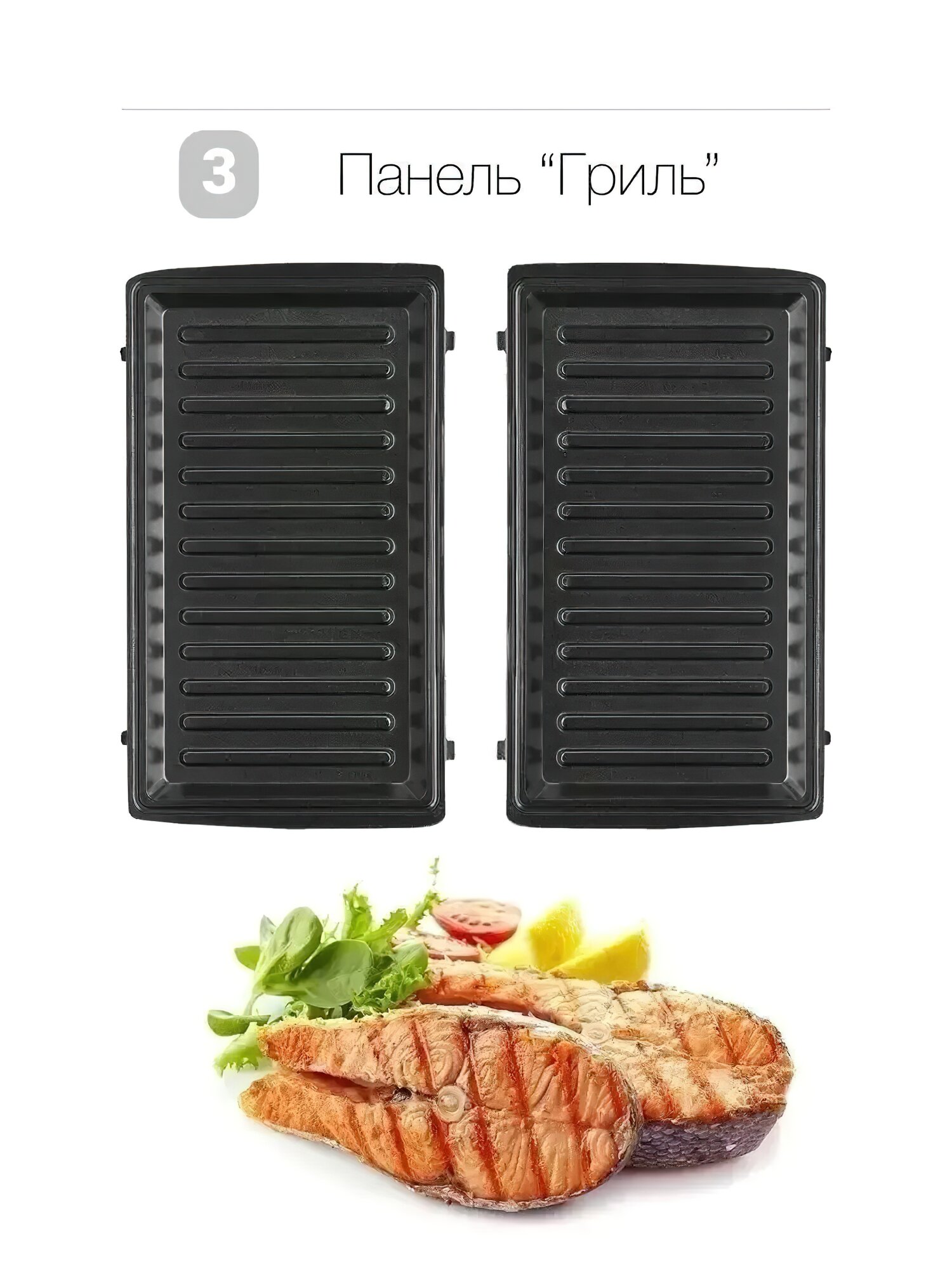 | Особенности | антипригарное покрытие, возможность смены панелей, защита от перегрева, индикатор работы, мытье в посудомоечной машине |
