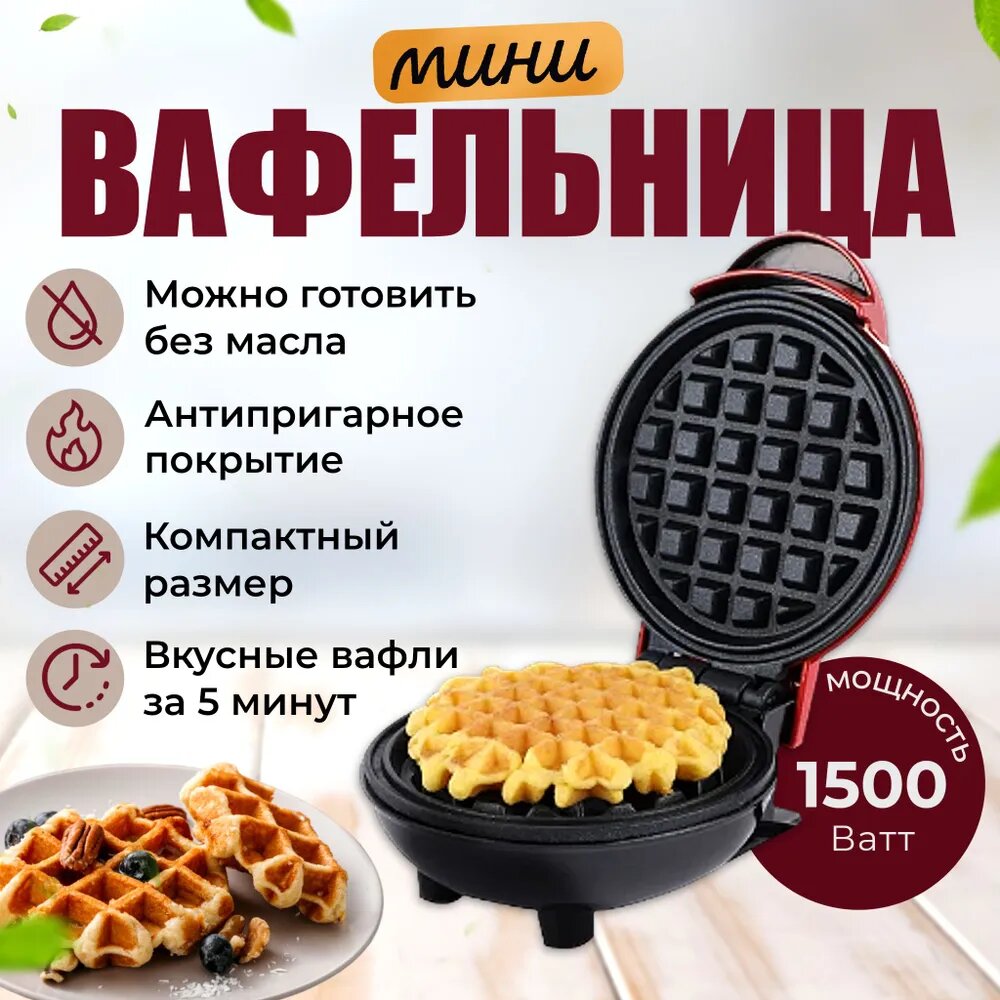 Мини-вафельница для венских и бельгийских вафель/ антипригарное покрытие/ электрическая 1500 Вт интересное: