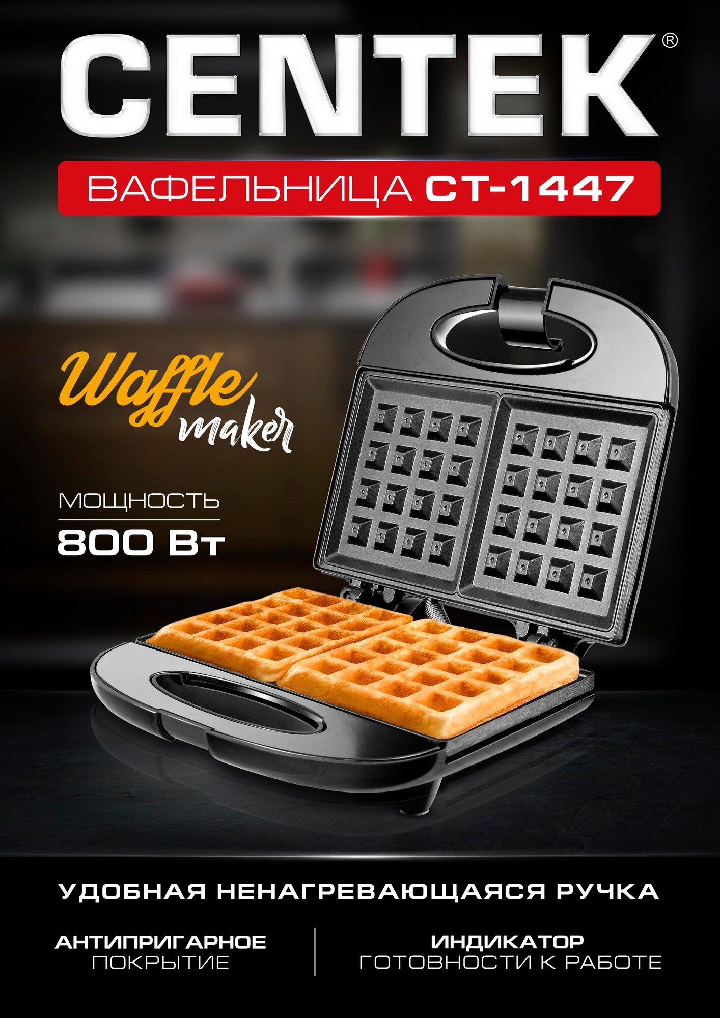 Купить Вафельница электрическая CENTEK CT-1447 - 800Вт, венские 226х148.5мм антипригарное покрытие, max 220°С