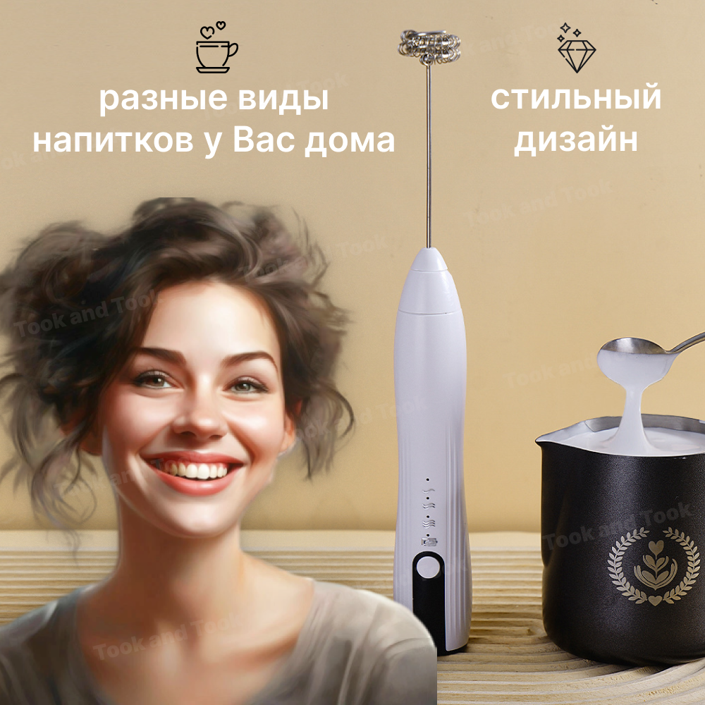 Капучинатор электрический ручной вспениватель для молока на подставке белый интересное: