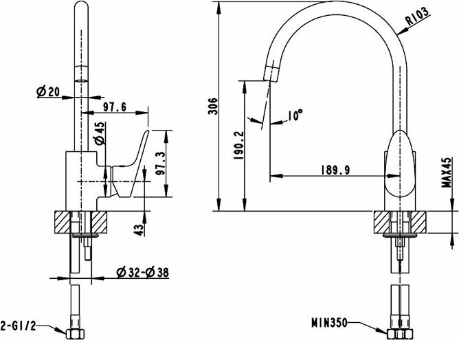 | Длина излива | 190 мм |