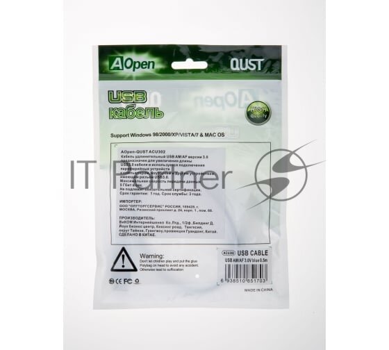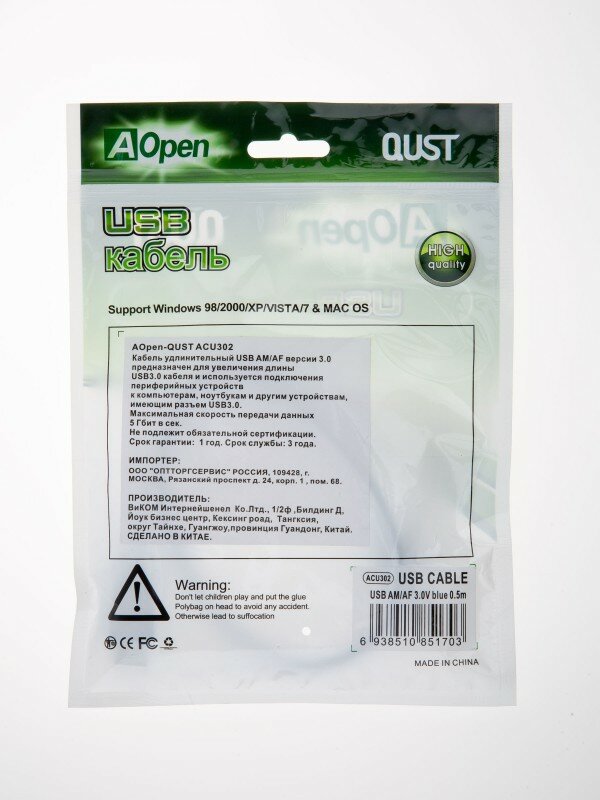 Ниже Вы можете прочитать отзывы на Кабель удлинительный Aopen/qust USB3.0 Am-Af 0,5m (ACU302-0.5M), ознакомится с подробными характеристиками, посмотреть интересные обзоры и фотографии на Кабель удлинительный Aopen/qust USB3.0 Am-Af 0,5m (ACU302-0.5M).