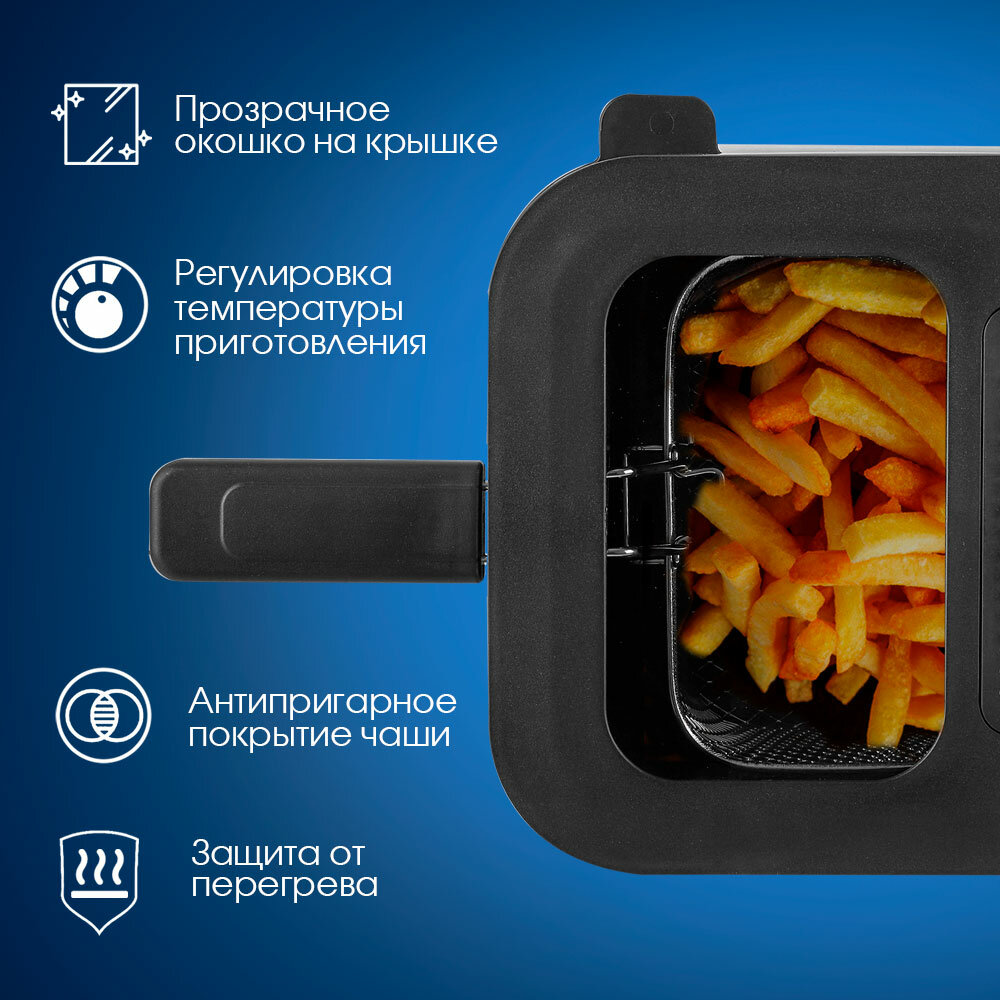 Фритюрница электрическая, 1.5 л, 6 режимов температуры, съемная чаша, серебристый