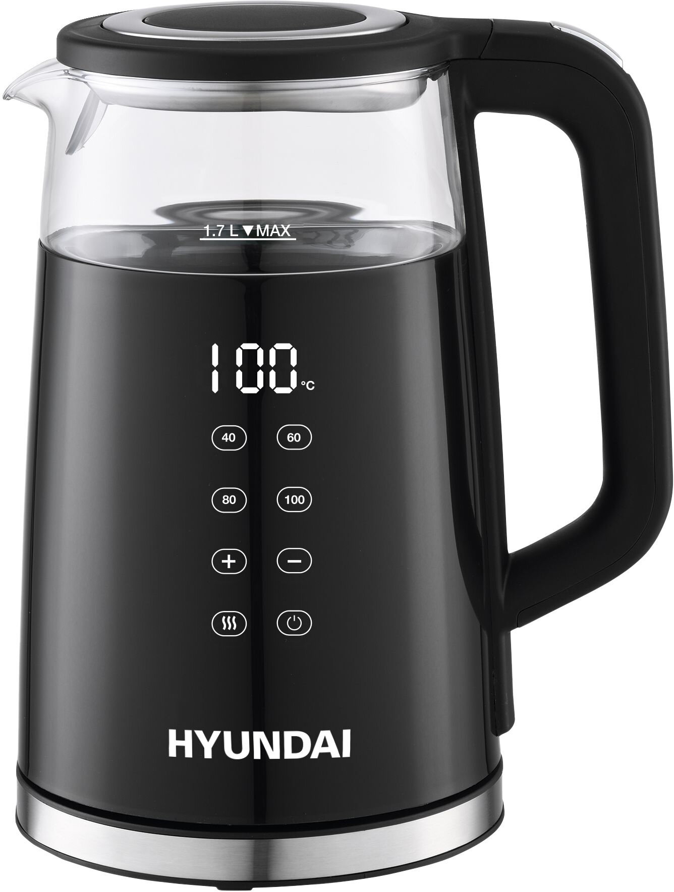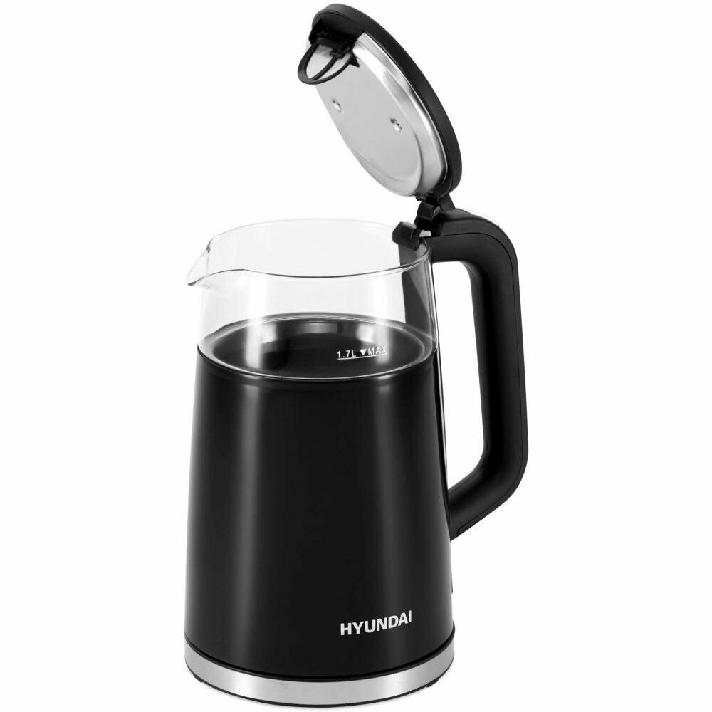 Купить Чайник электрический Hyundai HYK-G6404 1.7л. 2200Вт черный/серебристый (корпус: стекло)