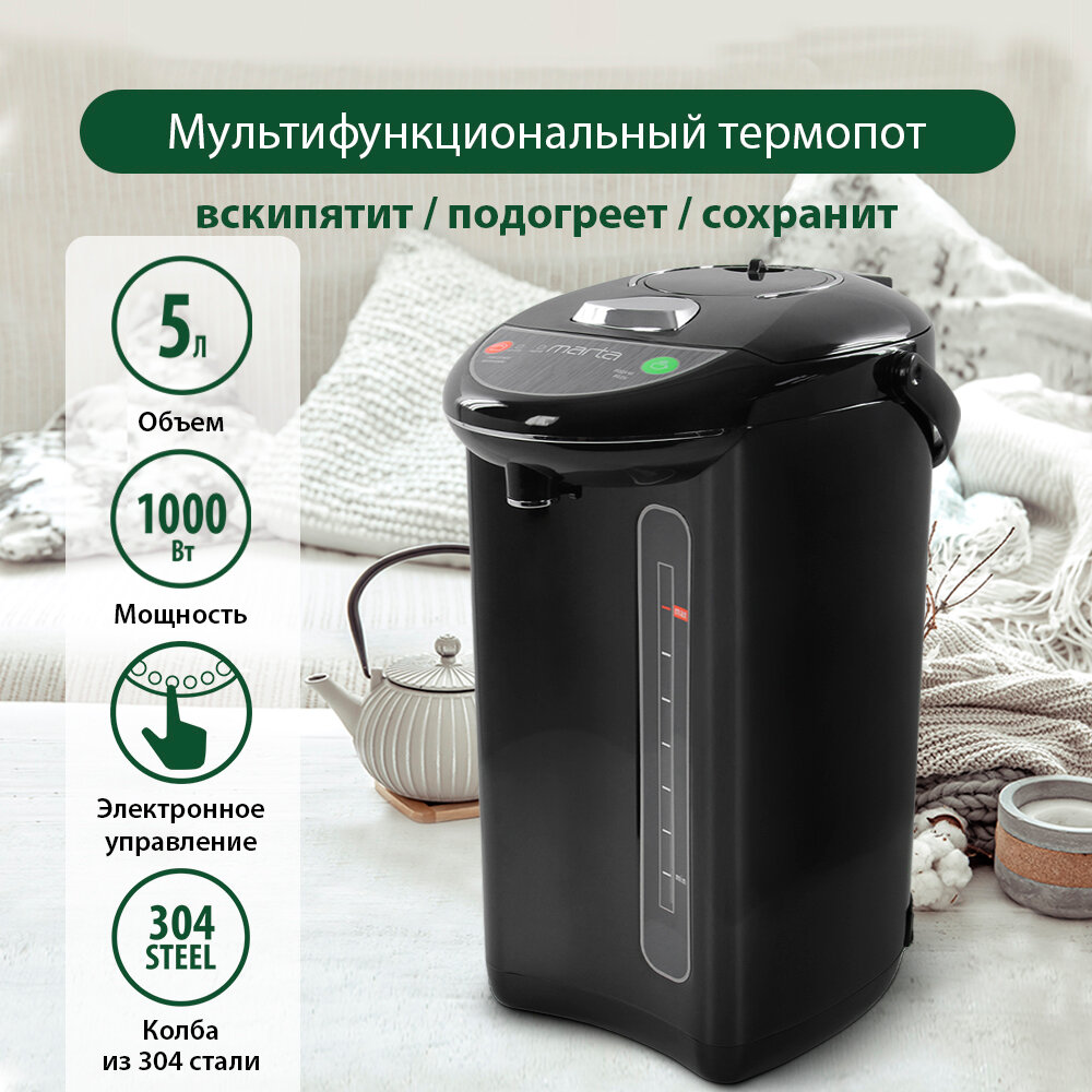 Термопот MARTA MT-1998 черный/черная сталь интересное: