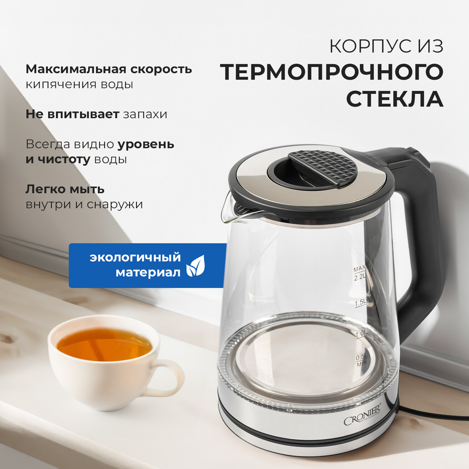 Ниже Вы можете прочитать отзывы на Электрический стеклянный чайник 2,2 литра, ознакомится с подробными характеристиками, посмотреть интересные обзоры и фотографии на Электрический стеклянный чайник 2,2 литра.