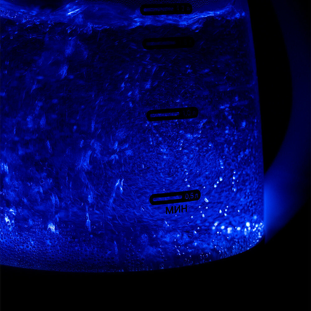 Чайник Kitfort КТ-6191, 1.3л, стеклянный, скрытый нагреватель, подсветка, блокировка без воды