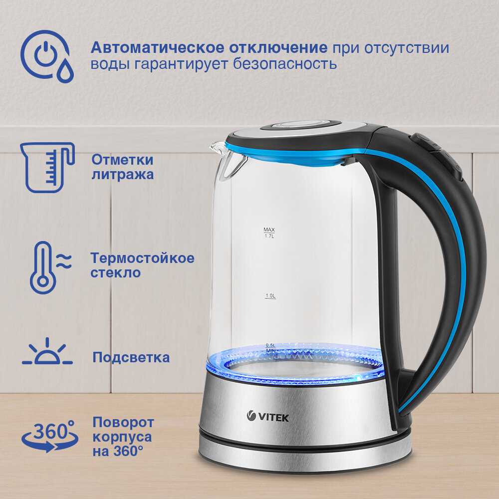 Чайник стеклянный Vitek VT-7028 интересное:
