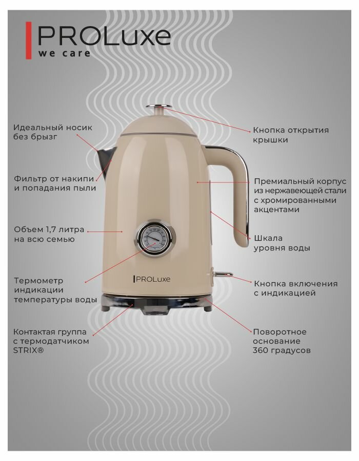 Электрочайник PROLuxe Stylish бежевый PL-WKBEI01,Strix,1,7 литра,2400 Вт интересное: