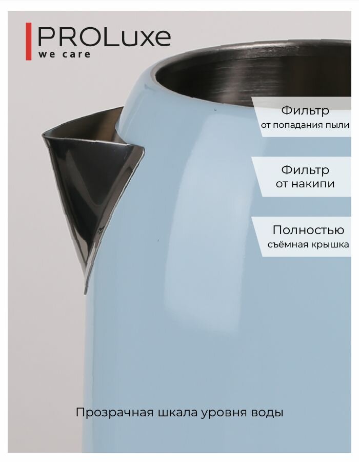 Электрочайник PROLuxe Stylish голубой PL-WKBLU01,Strix,1,7 литра,2400 Вт интересное: