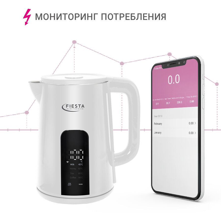 Умный электрический чайник Fiesta DK-1BM Wi-Fi (работает с Алисой, TUYA, SmartLife)