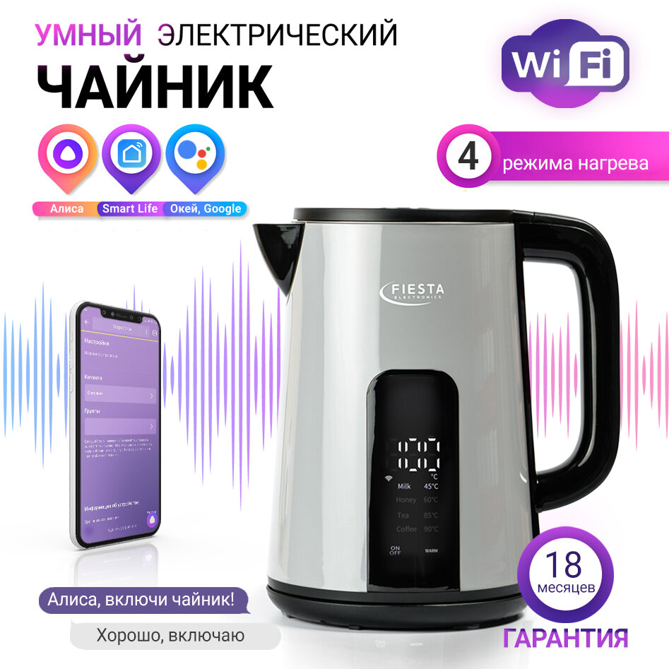 Умный электрический чайник Fiesta DK-1G Wi-Fi (работает с Алисой, TUYA, SmartLife) интересное:
