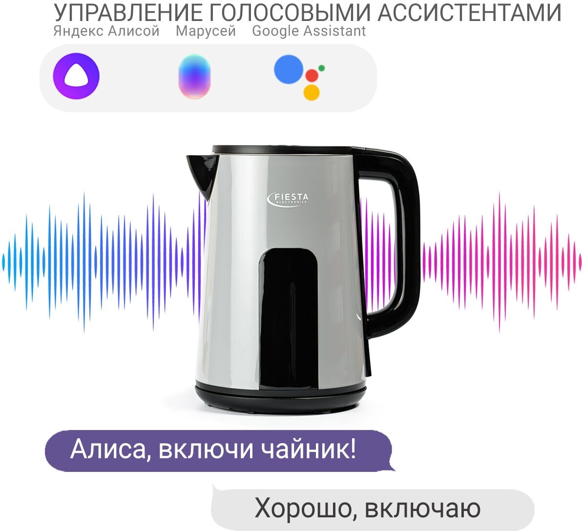Умный электрический чайник Fiesta DK-1BM Wi-Fi (работает с Алисой, TUYA, SmartLife)