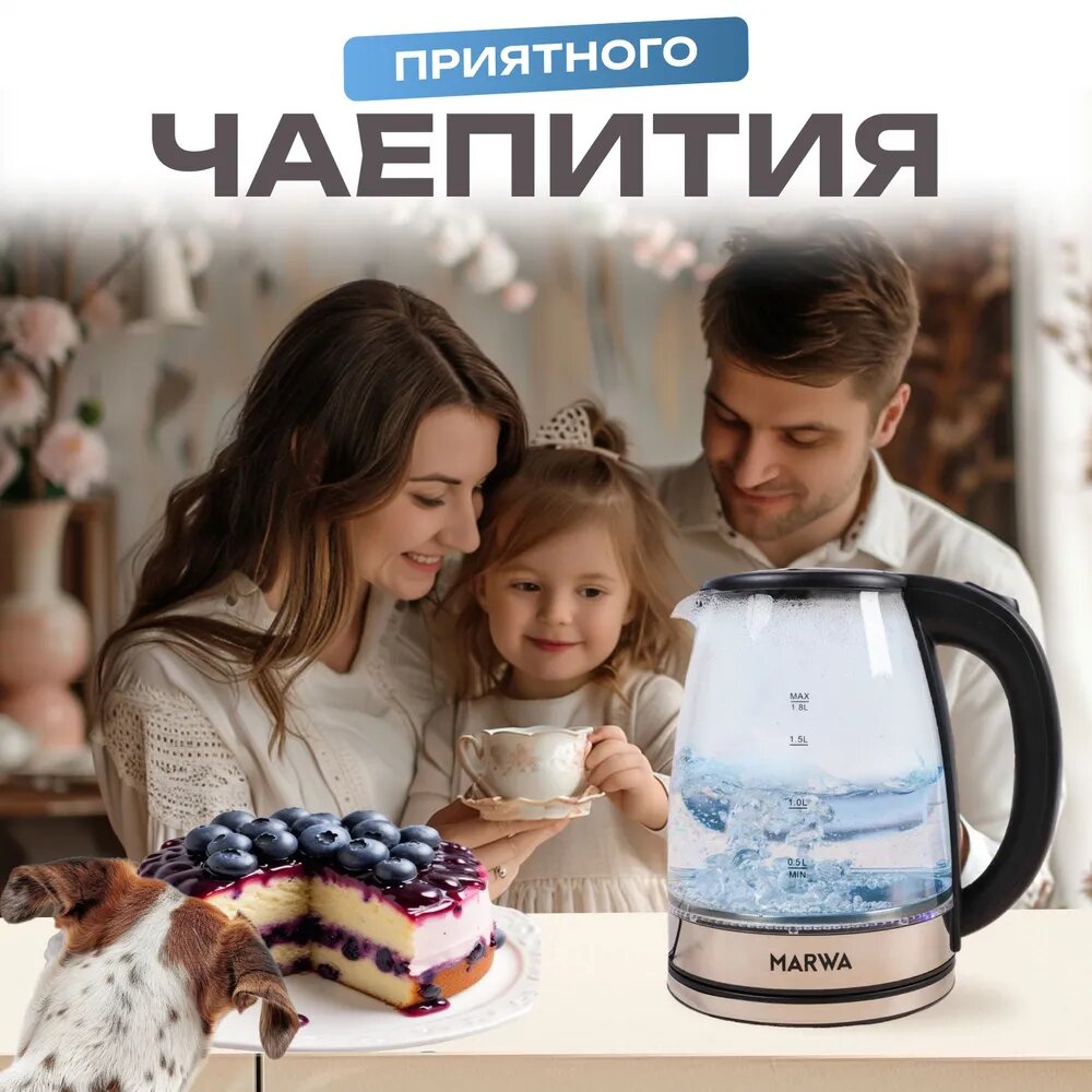 Чайник стеклянный электрический MARWA с LED-подсветкой 1,8 литра интересное: