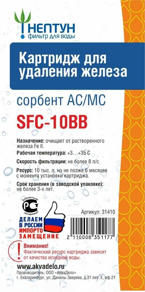 Картридж фильтра для очистки воды от железа “Нептун” SFC-10BB. Обезжелезивание интересное: