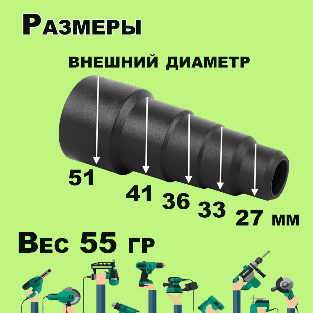 Переходник универсальный 32/36/39/40/36/32 мм, для пылесоса, строительных инструментов