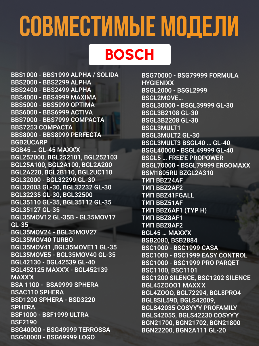 | Производитель совместимого пылесоса | Bosch, Siemens |