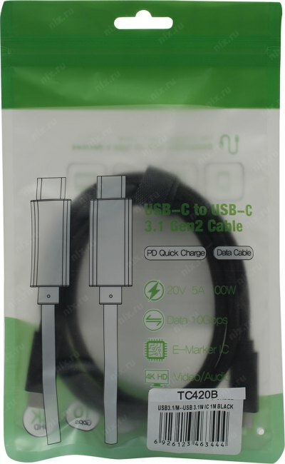 | Разъемы кабеля | USB 3.1 Type-C (m) - USB 3.1 Type-C (m) |
