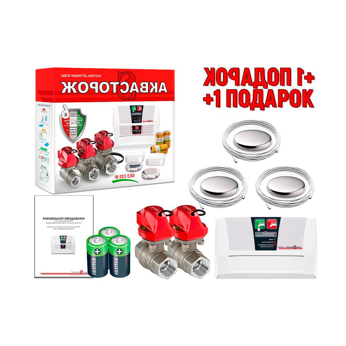 Система защиты от протечек воды Аква-Сторож Комплект 22:64-3/4 (Q24664K22) RUB, Оригинал, К+ (+ подарок). Защита от протечки в доме и в квартире. интересное: