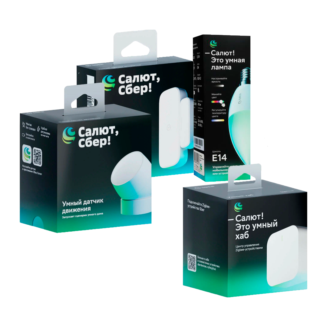Комплект умного дома SBER, комплект умные датчики + умный хаб + умная светодиодная лампа, SBDV-00068R, Zigbee 3.0, белый интересное: