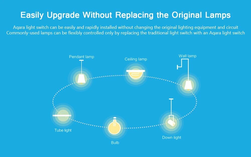 Настенный выключатель Aqara D1, Умный домашний выключатель, без нейтрального одиночного пожарного провода, с нулевой линией, ZigBee, беспроводные переключатели Mi Home