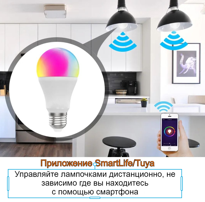 Умная лампочка Wi-Fi Tuya 9W с голосовым управлением