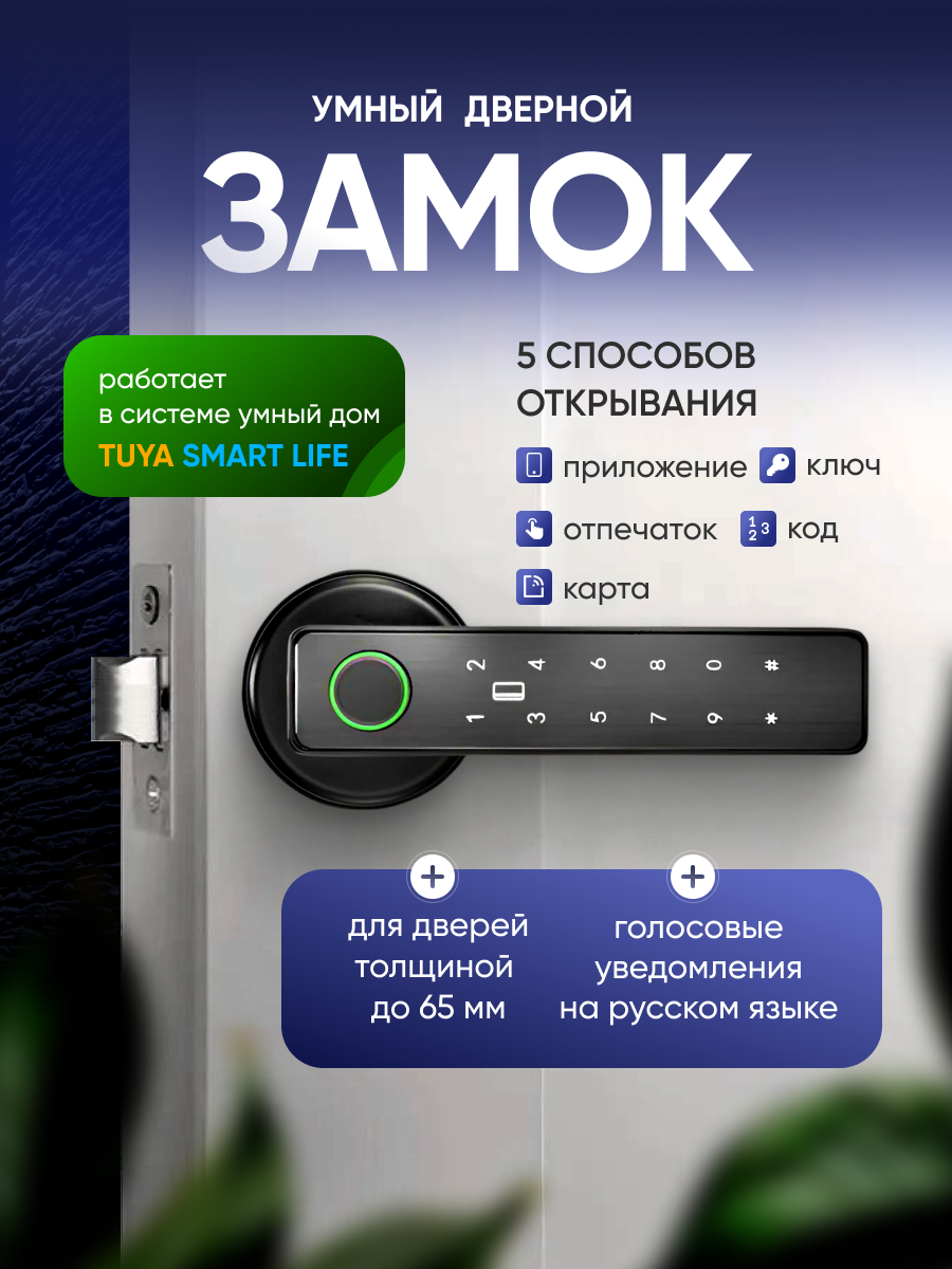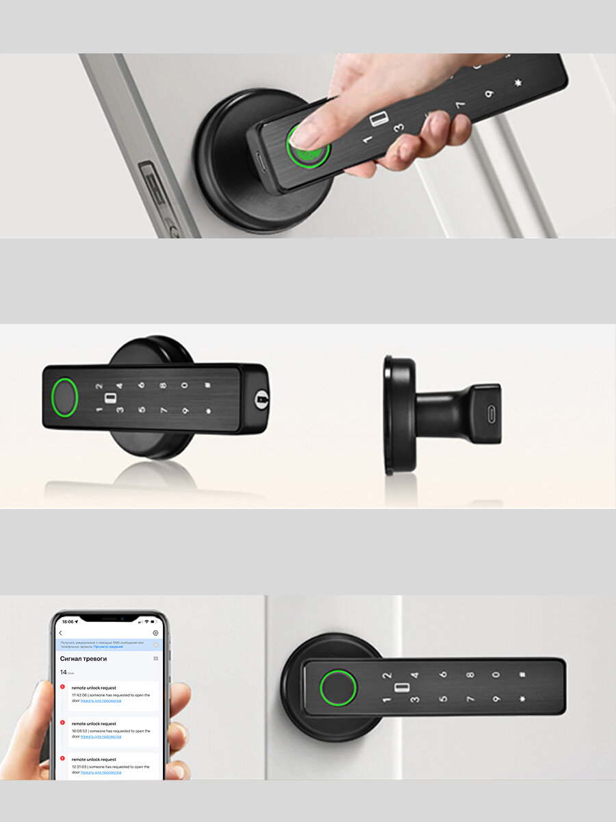 Умная дверная ручка с биометрией, электронный замок Tuya Smart Life интересное: