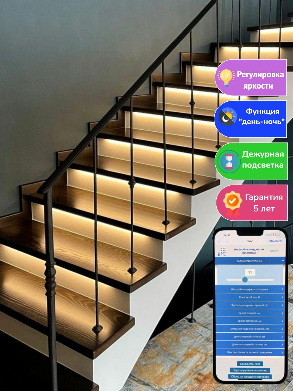 Комплект автоматической подсветки 22 ступеней лестницы с датчиками движения ETL, система умный дом, свет теплый-3000К интересное: