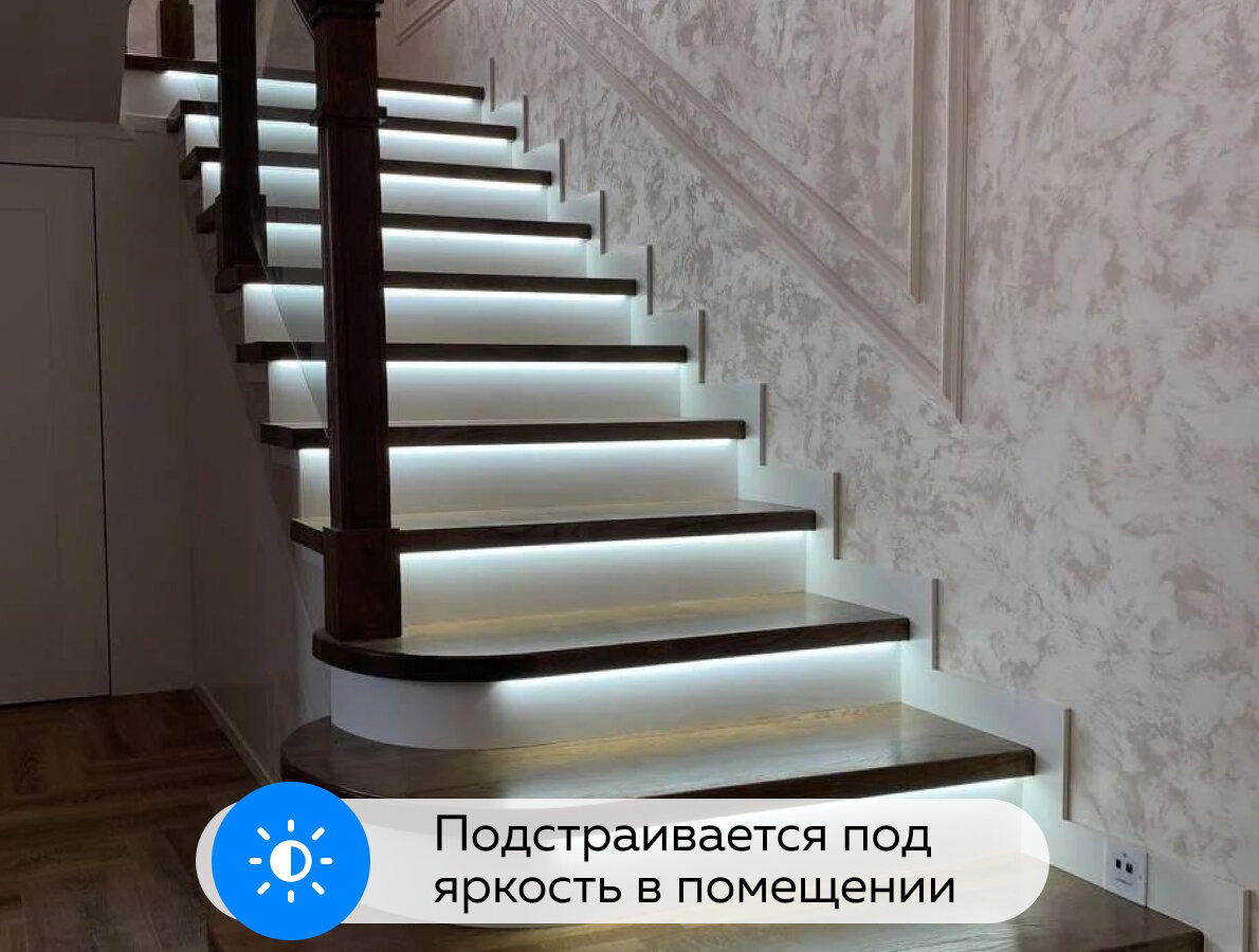 Готовая система подсветка для лестницы с датчиком движения Uzen со светодиодной лентой 30 м, 6000К, холодный интересное: