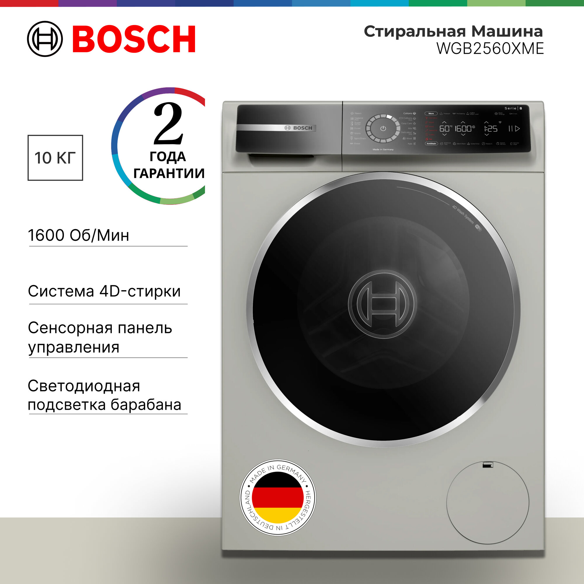 Ниже Вы можете прочитать отзывы на Стиральная машина Bosch Serie 8 WGB2560XME, 10 кг, фронтальная загрузка, программ - 14, серый, ознакомится с подробными характеристиками, посмотреть интересные обзоры и фотографии на Стиральная машина Bosch Serie 8 WGB2560XME, 10 кг, фронтальная загрузка, программ - 14, серый.