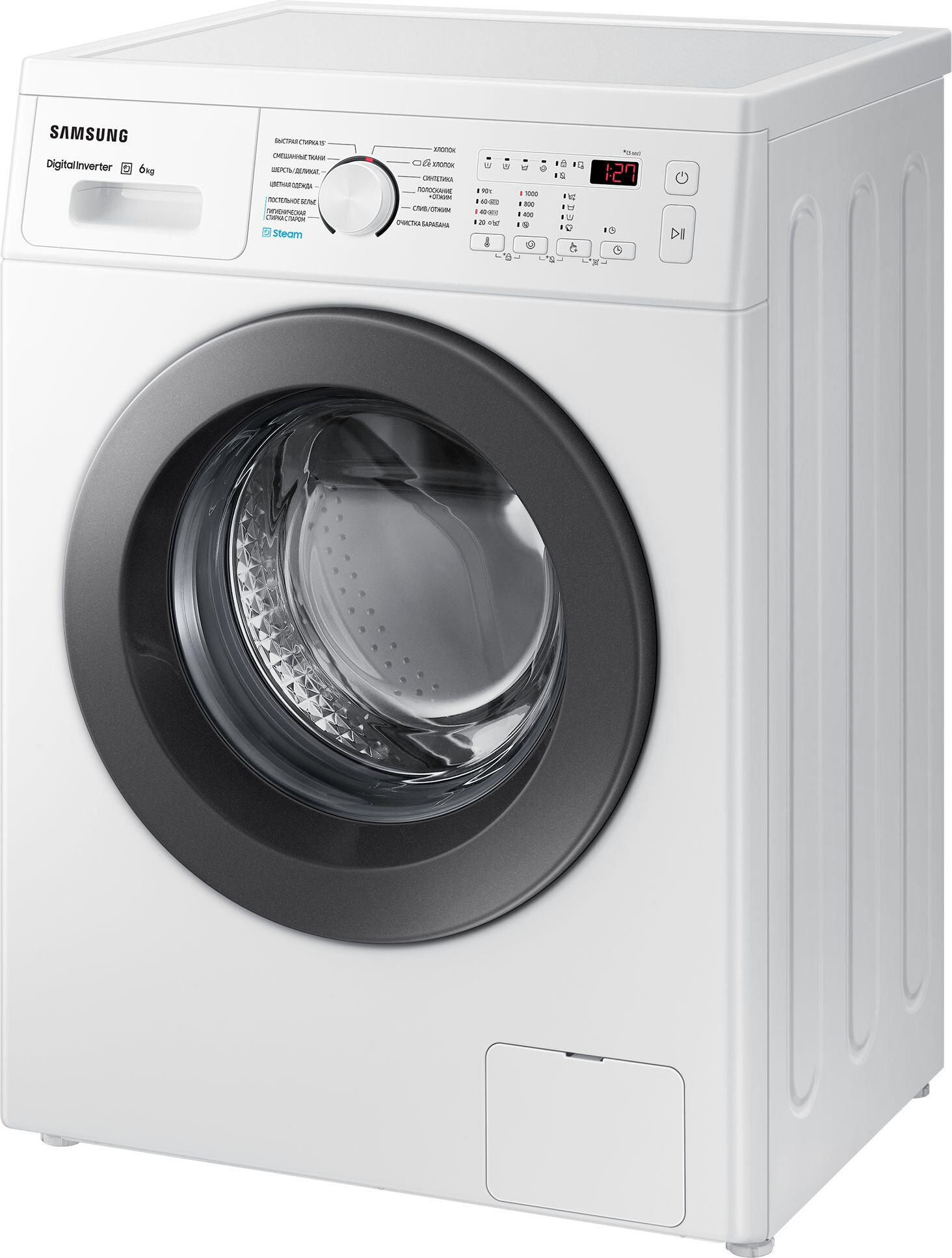 | Программы | быстрая стирка / дополнительное полоскание / ежедневная стирка / замачивание / интенсивная стирка / отжим / полоскание / предварительная стирка / стирка деликатных тканей / стирка паром / стирка синтетики / стирка смешанных тканей / стирка спортивной одежды / стирка хлопка / стирка цветных вещей / стирка шерсти / экономичная программа |