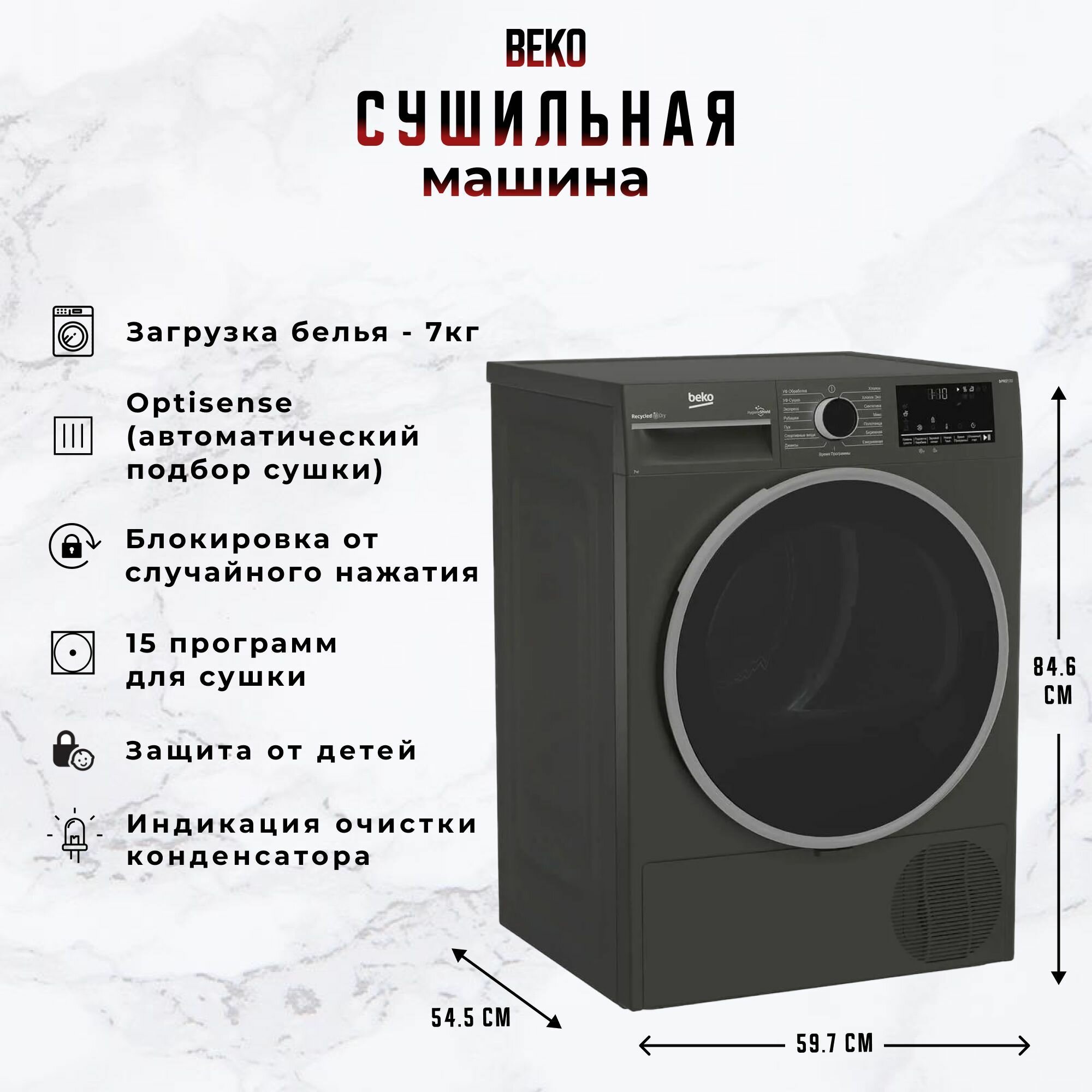 Сушильная машина BEKO B3T47239A,7 кг, антрацит, (7188303400)