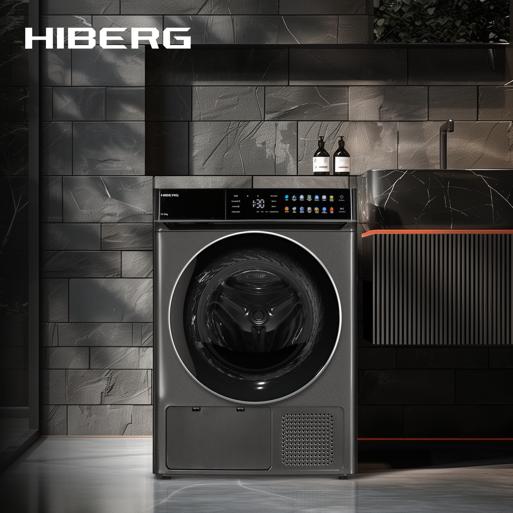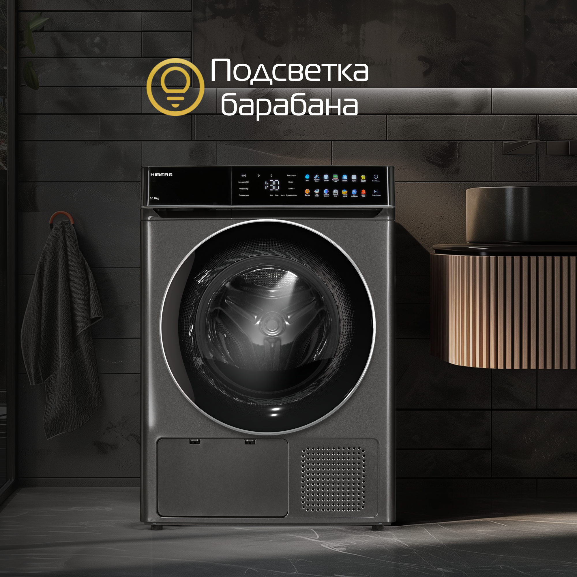 Сушильная машина HIBERG HDQ11 – 10 SD, с тепловым насосом, загрузка 10 кг, электронное управление, цвет темно-серый,