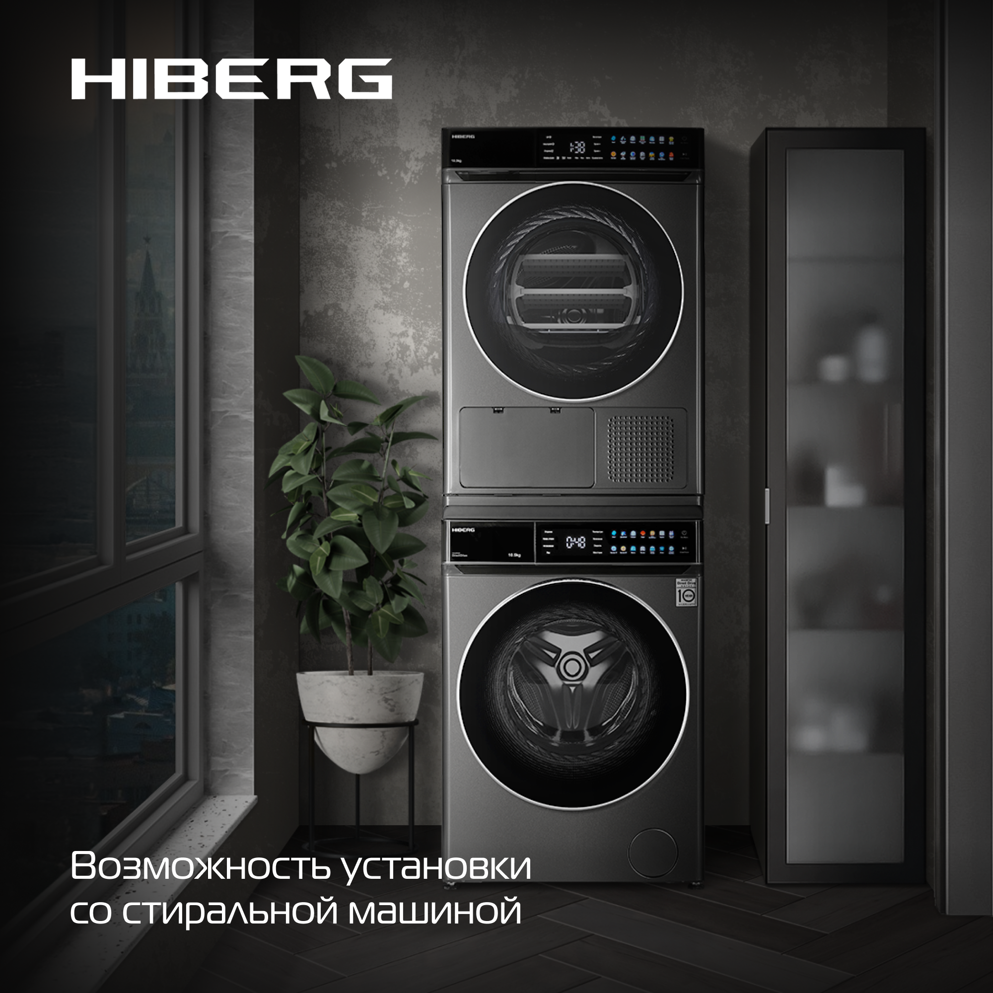 Сушильная машина HIBERG HDQ11 10 SD, тепловой насос, загрузка 10 кг, электронное управление, программа Smart, УФ-стерилизация, возможность установки колонной со стиральной машиной