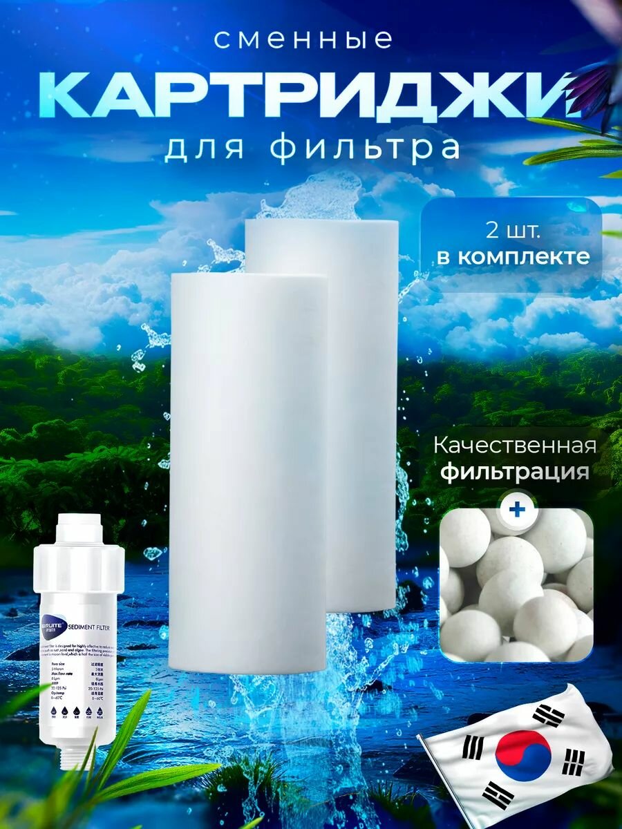 Сменный корейский фильтр на душ, от жесткой воды, хлора и ржавчины многоразовый 2шт