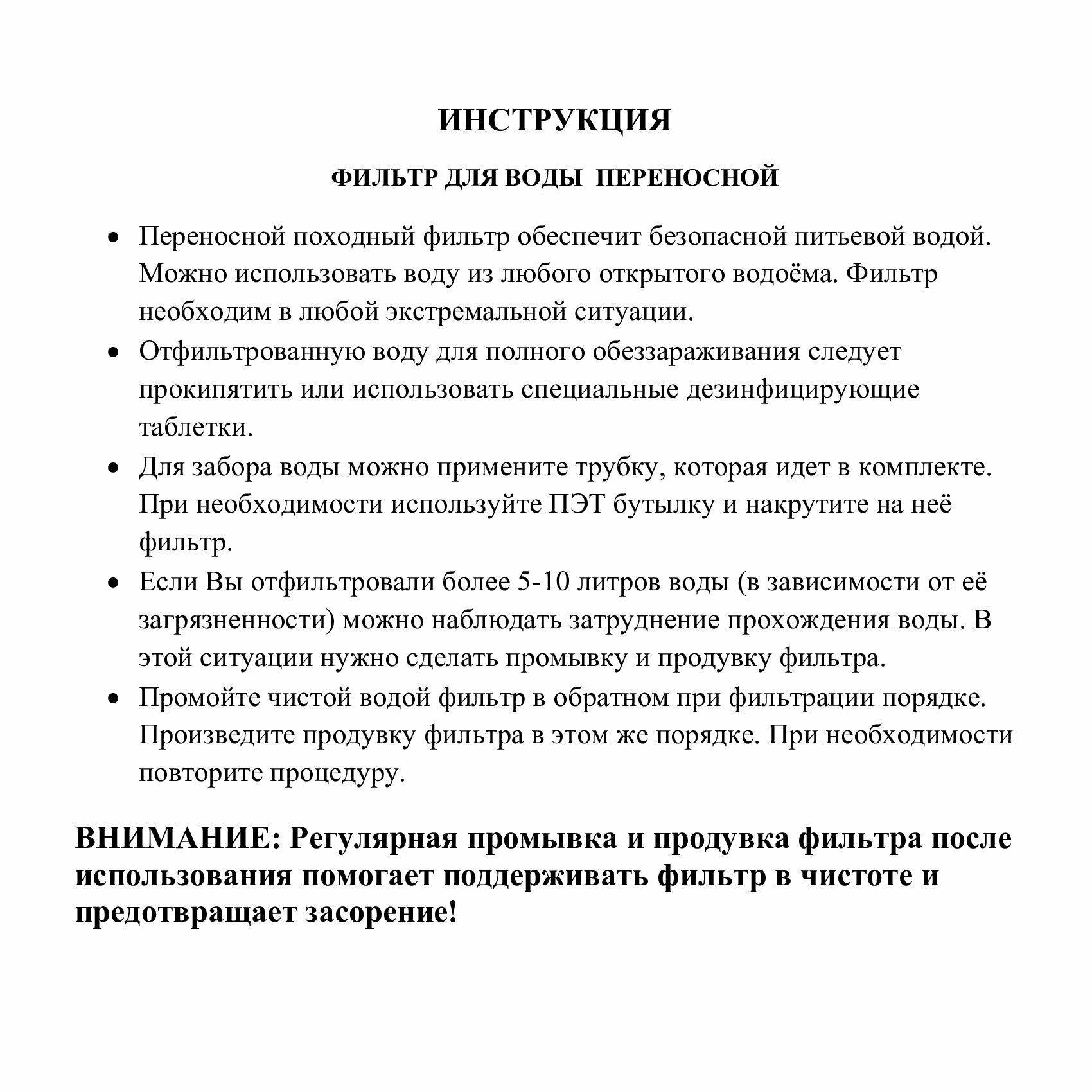 | Дополнительная информация | Чистит воду из любого источника! |